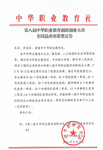 近日,由教育部、人力资源和社会保障部指导,中华职业教育社主办,湖北省中华职业教育社、黄石市委市政府、湖北工程职业学院承办的第八届中华职业教育创新创业大赛在湖北黄石举行。
