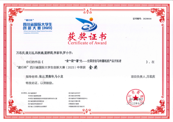 ¡¡¡¡1¡¢¡°½¨Ðб¡±ËÄ´¨Ê¡¹ú¼Ê´óѧÉú´´Ð´óÈü£¨2023£©½ð½±