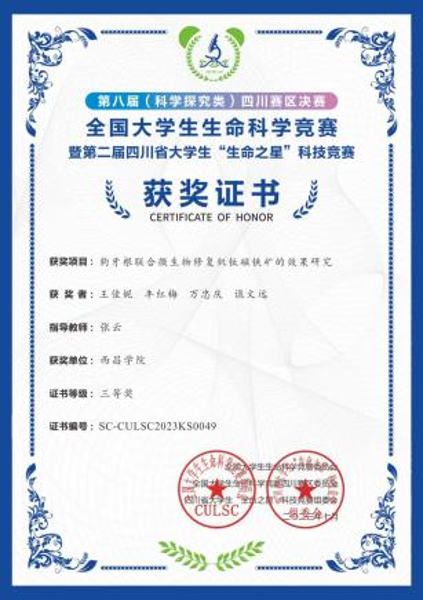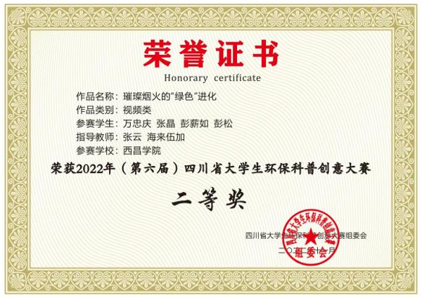 ¡¡¡¡4¡¢µÚÁù½ìËÄ´¨Ê¡´óѧÉú»·±£¿ÆÆÕ´´Òâ´óÈü¶þµÈ½±