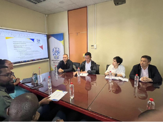 访问祖鲁兰大学农业科学与工程学院,与院长卡博索·莱赫罗恩亚、农学系主任梅鲁西·西班达就展开交流。