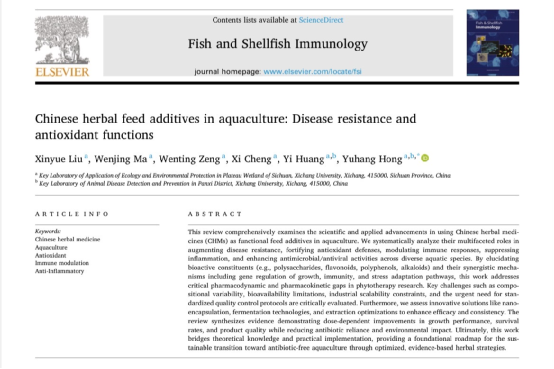 ¡¡¡¡½üÈÕ£¬ÎÒÔº2023¼¶¶¯Îïҽѧרҵ1°à±¾¿ÆÉúÁõÐÀÔÃÒÔµÚÒ»×÷ÕßÉí·Ý׫дµÄÂÛÎÄ¡°Chinese herbal feed additives in aquaculture: Disease resistance and antioxidant functions¡±ÔÚ¹ú¼ÊÖªÃûѧÊõÆÚ¿¯¡¶Fish and ShellFish Immunology¡·£¨SCIEÊÕ¼£¬Öйú¿ÆÑ§ÔºÅ©ÁÖ¿ÆÑ§´óÀà2ÇøTOP£¬ÊÞҽѧСÀà1Çø£¬5ÄêIF=4.2£©ÔÚÏß·¢±í¡£Ë®²úÑøÖ³×¨Òµ2024¼¶ÔøÎÄæÃ¡¢2023¼¶ÂíÎľ²²ÎÓëÆäÖС£¸ÃÂÛÎĵõ½ÁËÎ÷²ýѧԺÅʵǼƻ®£¨117620023£©ºÍÎ÷²ýÊпƼ¼ÏîÄ¿£¨18JSYJ13£©µÄÖ§³Ö£¬ÂÛÎÄͨѶ×÷ÕßΪ¶¯Îï¿ÆÑ§Ñ§Ôº½ÌʦºéÓ¸±½ÌÊÚ¡£