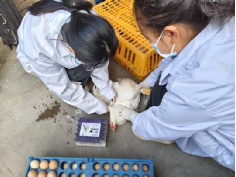 晨曦微露,服务队清晨抵达养殖场后即刻投入工作。队员们按分工迅速分组,做好防护后携带无菌采血管、一次性采血针等进入鸡舍,轻稳固定蛋鸡,规范消毒后采集血样。这些样本当日送往实验室,通过专业设备检测多项血液生化指标,从生理层面评估中草药添加剂饲料对鸡群产蛋性能的影响。