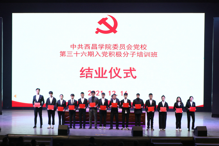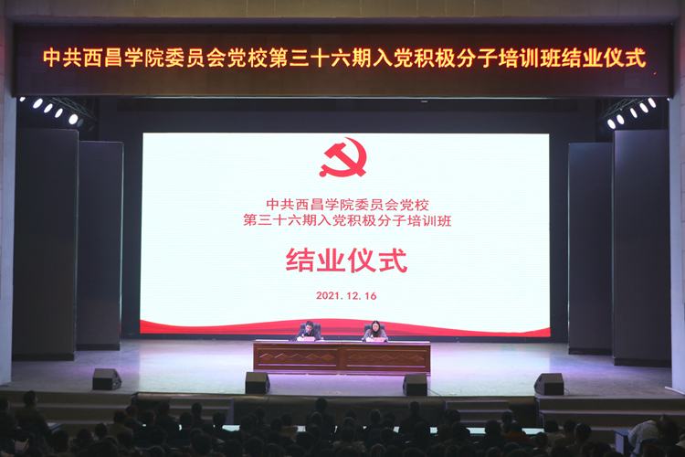12月16日晚,中共西昌学院委员会党校第三十六期入党积极分子培训班结业仪式在北校区学生活动中心举行。党委书记彭正松,党委常委、副校长张炜,党建办负责人,各二级单位党委书记、副书记,学生党支部书记参加结业仪式。结业仪式由张炜主持。
