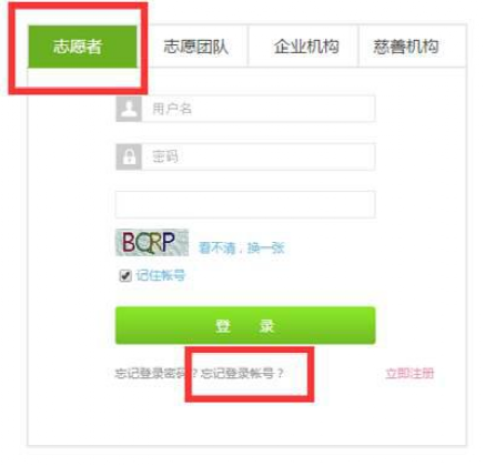 (2)在志愿四川(http://www.sczyz.org.cn/)网站首页右上角点击“登录”,进入登录界面,在页面右下角点击“忘记登录账号”,如下图: