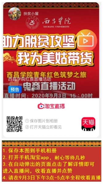 ¡¡¡¡2020Äê9ÔÂ3ÈÕ15£º00£¬Î÷²ýѧԺ¡°ºìÉ«ÖþÃÎÖ®Âá±µçÉÌÖ±²¥ÍŶӡª¡ª¡°·öƶСÎÝ¡±½«¼ÌÉÏÒ»´ÎµÄÖ±²¥»î¶¯µÄζȣ¬½«ÔÙ´Îͨ¹ýÌÔ±¦Ö±²¥´ø»õµÄ·½Ê½£¬ÎªÁ¹É½ÃÀ¹ÃÏØÏúÊÛÌØÉ«Å©²úÆ·£¬ÎªÁ¹É½ÍÑÆ¶¹±Ï××Ô¼ºµÄÇà´ºÁ¦Á¿¡£ ¡¡¡¡»¶ÓͬѧÃÇ9ÔÂ3ºÅÏÂÎç3µã׼ʱ½øÈëÖ±²¥¼ä£¬Îª¡°ºìÉ«ÖþÃÎÖ®Âᱡª¡ª¡°·öƶСÎÝ¡±µÄС»ï°éÃÇÖúÍþ¡¢Äź°¡¢µãÔÞ£¬»¹¿ÉÒÔºÍÖ÷²¥ÃÇȤ滥¶¯Ó´¡£ ¡¡¡¡ ¡¡¡¡°®ÐÄСÌùÊ¿£º£¨½øÈëÖ±²¥·½Ê½£© ¡¡¡¡¢Ù±£´æÉÏͼÖÁÊÖ»úÏà²á ¡¡¡¡¢ÚÓÃÊÖ»ú´ò¿ªÌÔ±¦app ¡¡¡¡¢ÛÔÚ×Ô¶¯µ¯³öµÄ»Ã棬µã»÷½øÈë¼´¿ÉÊÕ¿´Ö±²¥ ¹ØÓڹ㷺²ÎÓë¡°ÒÔ¹º´ú¾è¡±µçÉÌÖ±²¥»î¶¯µÄ³«ÒéÊé ¡¡¡¡ ¡¡¡¡Ç×°®µÄͬѧÃÇ:Ŀǰ£¬È«¹ú»¹ÓÐ52¸öδժñƶÀ§ÏØ£¬ËÄ´¨×îºó7¸ö´ýժñƶÀ§ÏØÈ«²¿¼¯ÖÐÔÚÁ¹É½£¬ÍÑÆ¶¹¥¼áÒѾµ½ÁË¿ÐÓ²¹ÇÍ·¡¢¹¥¼á°ÎÕ¯µÄ³åÊ£½×¶Î£¬È«Éç»áÁ¦Á¿¶¼ÔÚ»ý¼«Ðж¯£¬È«Éç»á×ÊÔ´¶¼ÔÚÔ´Ô´²»¶Ï»ã¾Û¡£×÷ΪÁ¹É½Î¨Ò»µÄÒ»ËùÆÕͨ±¾¿Æ¸ßУ-Î÷²ýѧԺµÄÒ»·Ý×Ó£¬ÎÒÃÇÓÐÔðÈκÍÒåÎñΪ¾öʤÁ¹É½ÍÑÆ¶¹¥¼á¹±Ï×Á¦Á¿¡£Îª½øÒ»²½×öºÃÎÒУ¶Ô¿Ú°ï·öÃÀ¹ÃÏØµÄÍÑÆ¶¹¥¼á¹¤×÷£¬ÓÐЧ֧³ÖÎÒУ¡°ÇàÄêºìÉ«ÖþÃÎÖ®ÂúìÂÃÖ®ÐÇ¡±ÒÔ¹º´ú¾èµçÉÌÖ±²¥ÍŶӣ¬ÔÚ´Ë£¬ÏòȫУ¹ã´óÇàÄêѧÉú·¢³ö³«Òé:Ò»¡¢Ï£ÍûͬѧÃÇ»ý¼«¹Ø×¢¡¢ µãÔÞÎÒУѧÉúÍŶӰïÖúÃÀ¹ÃÏØºÍ·áũҵͶ×Ê·¢Õ¹ÓÐÏÞÔðÈι«Ë¾ÏúÊÛµÄÌØÉ«Å©²úÆ·£¬ÎªÃÀ¹ÃÏØÆ¶À§ÈºÖÚ·îÏ×Ò»·Ý°®ÐÄ£¬ÎªÍÑÆ¶¹¥¼á¹±Ï×Ò»·ÝÁ¦Á¿¡£Ò»¡¢Ï£ÍûͬѧÃÇ»ý¼«·¢»ÓÇÅÁºÅ¦´ø×÷Ó㬠Ðû´«ÃÀ¹ÃÏØÌØÉ«Å©²úÆ·£¬ÎªÃÀ¹Ã²úÆ·Ç£Ïß´úÑÔ£¬ÍØÕ¹ÏúÊÛÇþµÀ¡£ÎÒÃǼáÐÅ£¬ÔÚȫУ¹ã´óͬѧµÄ¹ã·º²ÎÓëÏ£¬ÎÒУ¡°ÇàÄêºìÉ«ÖþÃÎÖ®ÂúìÂÃÖ®ÐÇ¡±µçÉÌÖ±²¥»î¶¯±Ø½«ÏÆÆðÈȳ±¡¢È¡µÃʵЧ¡£ |