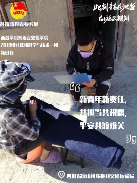 疫情肆意生长, 等待春天的时光好像无比的漫长。 但这个冬天并不寒冷, 因为有一颗颗热切的心在抗疫前线奋斗, 有一群群热情的人在远方支援。 西院志愿者亦挺身而出, 奉献出自己的一份爱心! 疫情阻断了交通,但阻断不了爱。俗说患难见真情,这一次,让我们一起来感受爱的力量与温度吧! 教师教育学院 疫情面前没有旁观者,疫情防控没有局外人。      信息技术学院 齐心协力抗疫情,愿一切都向好的方向转变!      彝语言学院 做“守护者”,就是要担使命、保安康。    机械与电子工程学院 隔离病毒,但不隔离爱,因为爱是桥梁。    这些爱,足以温暖这一整个冬天。当全民同心战疫情时,春天也一定会更加明媚的到来。 让我们心相连、情相拥、爱相通, 众志成城克时艰, 勤力同心战疫情。 于寒冬深处, 守一轮云开月明, 候一片春暖花开, 等一场期盼已久的相逢! 向最美志愿者们致敬! |