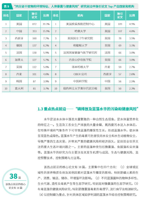 -»·¾³ÈËEnvironmentor ÈÕǰ£¬Öйú¿ÆÑ§Ôº¿Æ¼¼Õ½ÂÔ×ÉѯÑо¿Ôº¡¢Öйú¿ÆÑ§ÔºÎÄÏ×Ç鱨ÖÐÐÄÓë¿Æî£Î¨°²ÁªºÏÔÚ¾©·¢²¼ÁË¡¶2019Ñо¿Ç°ÑØ¡·ºÍ¡¶2019Ñо¿Ç°ÑØÈȶÈÖ¸Êý¡·±¨¸æ¡£±¨¸æÏÔʾ£¬2019Ä꣬ÔÚÊ®´óѧ¿ÆÁìÓòÕûÌå²ãÃæ£¬ÃÀ¹ú×îΪ»îÔ¾£¬Î»¾ÓÈ«ÇòÊ×λ¡£Öйúλ¾ÓµÚ¶þ£¬Ó¢¹ú¡¢µÂ¹úºÍ·¨¹ú·Ö±ðΪµÚÈý¡¢µÚËĺ͵ÚÎå¡£ÖйúºÍÃÀ¹úÖ®¼äµÄ²î¾àÕýÔÚ½øÒ»²½ËõС¡£ Éú̬Óë»·¾³¿ÆÑ§ÁìÓòµÄTop10 ÈȵãÇ°ÑØÖ÷Òª·Ö²¼ÔÚÉú̬¿ÆÑ§ºÍ»·¾³¿ÆÑ§Á½¸ö×ÓÁìÓò£¬Ë®ÌåÉú̬»·¾³ÎÊÌâ¼°¶àѧ¿Æ½â¾ö·½°¸ÈÔÊÇÑо¿Ç°ÑØÖØÒªµÄ¹Ø×¢µã¡£ ¾ßÌåÀ´¿´£¬»·¾³¿ÆÑ§×ÓÁìÓòµÄÈȵãÇ°ÑØÖ÷񻃾¼°ÀûÓÃ΢ÉúÎïµÄÎÛË®´¦Àí¼¼Êõ¡¢Ë®ÖÐÎÛȾÎï·ÖÎö·ÖÀë¼¼ÊõºÍ»·¾³ÎÛȾÎïµÄ»·¾³ÌØÕ÷Óë·çÏÕÑо¿¡£ÆäÖУ¬ÎÛË®´¦Àí¼¼ÊõÏà¹ØµÄÇ°ÑØ°üÀ¨¡°»îÐÔÎÛÄàÏû»¯¼¼ÊõµÄ»úÀí¡¢¹¤ÒÕÓëÓ°ÏìÒòËØ¡±¡¢¡°ÑáÑõ°±Ñõ»¯¼¼Êõ¼°ÔÚÎÛË®´¦ÀíÖеÄÓ¦Óá±¼°Ïû»¯¹ý³ÌÖС°Î¢ÉúÎïÖÖ¼äµç×Ó×ªÒÆµÄ»úÀí¼°Ó¦Óᱡ£Ë®ÖÐÎÛȾÎï·ÖÎö·ÖÀë¼¼Êõ°üÀ¨¡°ÀûÓÃÄÉÃ׸´ºÏ²ÄÁÏÎü¸½È¥³ýË®ÖÐÓж¾½ðÊôÀë×Ó¡±¡¢¡°½ðÊôÓлú¿ò¼Ü²ÄÁÏÈ¥³ýË®ÖÐÎÛȾÎ¼°¡°ÓÃÓÚÒºÌåÖÐÓж¾ÎïÖʼ°ÉúÎï»îÐÔÎïÖÊ·ÖÎö¡¢·ÖÀëµÄÐÂÐͲÄÁϵÄÖÆ±¸Ó빦ÄÜ¡±¡£»·¾³ÎÛȾÎïµÄ»·¾³ÌØÕ÷Óë·çÏÕÑо¿·½ÏòµÄÇ°ÑØÎª¡°ÄÚ·ÖÃÚ¸ÉÈÅÎïµÄ»·¾³ÌØÕ÷¡¢ÈËÌ屩¶Ó뽡¿µ·çÏÕ¡±¡£ Éú̬¿ÆÑ§×ÓÁìÓòµÄÈȵãÇ°ÑØÖ÷񻃾¼°ºê¹Û´ó³ß¶ÈµÄÉúÎïȦºÍÉú̬ϵͳµÄ±ä»¯Óë·çÏÕ£¬°üÀ¨3¸öÇ°ÑØ£º¡°µØ±íÖ²±»¸²¸Ç±ä»¯¶ÔÆøºòµÄÓ°Ï족¡¢¡°ÔÚÈ«Çò³ß¶ÈÉ϶ÔÍâÀ´ÎïÖÖÈëÇֵļà²â¼°Ó°Ïì·ÖÎö¡±ºÍ¡°Á×Åŷż°À¶ÔåË®»ªµÄÎÛȾºÍ½¡¿µ·çÏÕ¡±¡£ |
