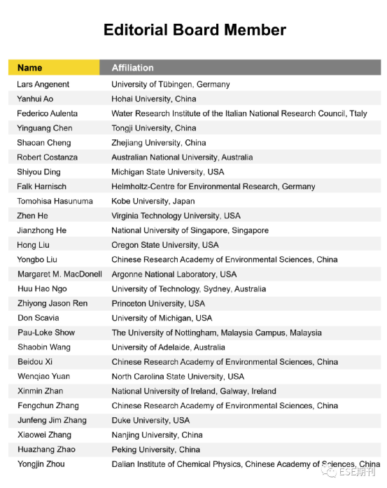 Environmental Science & Ecotechnology (ÖÐÎÄÒëÃû¡¶»·¾³¿ÆÑ§ÓëÉú̬¼¼Êõ¡·£¬Ó¢Îļò³ÆESE)ÊÇÓÉÖйú»·¾³¿ÆÑ§Ñ§»á¡¢¹þ¶û±õ¹¤Òµ´óѧ¡¢Öйú»·¾³¿ÆÑ§Ñо¿Ôº¹²Í¬Ö÷°ì£¬ÓÉElsevier³ö°æ¼¯ÍÅ·¢ÐеĿª·Å»ñÈ¡£¨open access£©¹ú¼ÊѧÊõÆÚ¿¯¡£ÆÚ¿¯¶¨Î»ÓÚ¿ìËÙ±¨µÀ¹úÄÚÍâ»·¾³¿ÆÑ§Óë¿É³ÖÐøÉú̬¼¼ÊõÁìÓòµÄÈȵãÎÊÌâºÍÇ°ÑØÑо¿³É¹û£¬Ö¼Ôڴһ¸öÓйú¼ÊÓ°ÏìÁ¦µÄѧÊõ½»Á÷ƽ̨¡£ÆÚ¿¯ÖØµã¹Ø×¢»·¾³Ó뽡¿µ¡¢È«ÇòÆøºò±ä»¯¡¢Éú̬¹¤³ÌÓëÂÌÉ«¿É³ÖÐø¼¼Êõ£¬ÉúÎï¹ý³ÌÓë¼¼Êõ£¬ÂÌÉ«ÄÜÔ´Óë¼¼Êõ¡¢ÂÌÉ«·¢Õ¹Ïà¹Ø±ê×¼¡¢Õþ²ßµÈÄÚÈÝ¡£ ESEÆÚ¿¯ÒÑ»ñµÃ¹ú¼ÒÐÂÎųö°æÊðÅú×¼°ì¿¯£¬¹úÄÚͳһÁ¬Ðø³ö°æÎïºÅΪCN10-1631/X£¨Ó¢ÎÄ£¬¼¾¿¯£©¡£ESE²ÉÓÿìËÙÆÀÉó·½Ê½Éó¸å£¬´Ó³É¹¦Ìá½»¸å¼þµ½·¢³öÉó¸å½áÂ󵀮½¾ùºÄʱ<14Ìì¡£µ±Ç°£¬±»ÊÕ¼µÄÎÄÕÂÃâ·Ñ·¢±í¡£ ESEÆÚ¿¯±àί»áÓɰüÀ¨17λ¹úÄÚÍâԺʿÔÚÄÚµÄ56λ֪Ãûר¼ÒѧÕß×é³É¡£ £¨Ò»£©¹ËÎÊίԱ»á ¡¡¡¡ ¡¡¡¡£¨¶þ£©±àί»á ¡¡¡¡ ¡¡¡¡ ¡¡¡¡ |