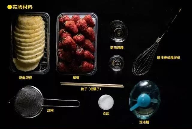 刑侦剧中的法医,有时会从血液或毛发样本中提取嫌疑犯的DNA,从而得出破获悬案的关键证据,最终确认出罪犯。他们给观众留下了深刻的印象:提取DNA需要各种高大严密的实验室设备。 事实上,借助简单的厨房工具,我们在家里就可以轻松做提取粗制DNA的小实验哦。 1准备材料。  这里我们需要的有:新鲜的菠萝(可用西柚酸橙等水果替代)、草莓、医用酒精、食盐、洗洁精、漏网、搅拌工具和筷子。 2将1~3颗的草莓去蒂(其他水果也可),加入100毫升水和一勺食盐,将草莓仔细碾碎、搅拌至没有明显的果肉颗粒(这里可以借助搅拌工具哦)。  原理 各种水果都是可以提取DNA的,本实验选择草莓主要是由于其“八倍体”的特性——每个草莓细胞中都有8份基因组,DNA含量高。另外,草莓更易碾碎、不必削皮去籽的特性也让实验更加简化。 食盐中的钠离子和氯离子可中和DNA上的电荷,让DNA变形聚集,使其在后续过程的提取中,更易沉淀出来。 3静置草莓果汁溶液片刻。  (悄咪咪喝一口) 4在所得悬液中加入5~10毫升洗洁精,加入几滴新榨菠萝汁,轻轻搅匀后静置10分钟,随后用滤网或者滤纸将悬液中的大颗粒滤除。  原理 细胞膜和细胞核膜的主要成分是脂质 ,洗洁精中的表面活性剂可破坏这一结构,将其中的DNA释放至溶液中。菠萝汁中的菠萝蛋白酶,可进一步将和DNA紧密结合的蛋白质消化掉,使我们得到更加纯粹的DNA。 西柚酸橙中也有与菠萝中相似的蛋白酶,因此也可以替换菠萝。 5将在冰箱冷藏过的医用酒精,沿着容器侧面缓缓倒入,此时可见酒精和草莓汁的明显分层现象。  原理 DNA是极性分子,乙醇是非极性分子。根据“相似相溶”的原理,DNA可溶解于水但难溶于乙醇,因此会在高浓度酒精中相互吸附形成沉淀。 冷却酒精是为了进一步降低DNA的溶解度,获得更多沉淀。 6静置一段时间后,我们就可以清楚的看到,在两种液体的交界处,白色的絮状DNA沉淀大量生成,并在浮力的作用下上升至酒精层上。 粘稠物(或类似絮状物)成团,即可用筷子将这些粗提的DNA取出。 |