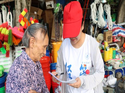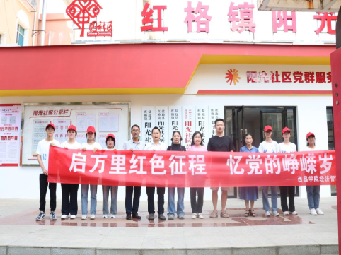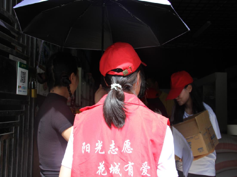 ¡¡¡¡Í¼Îª¡°Ñ§Ê·ÔöÐÅ¡±Êµ¼ùС¶ÓºÍÀÏʦÔÚºì¸ñÕòÑô¹âÉçÇø·þÎñÖÐÐÄǰºÏÓ°