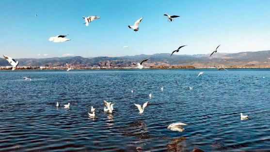 蓝天影落海波绿,诗一般的美丽画卷在欢乐的气氛里显得格外可爱。