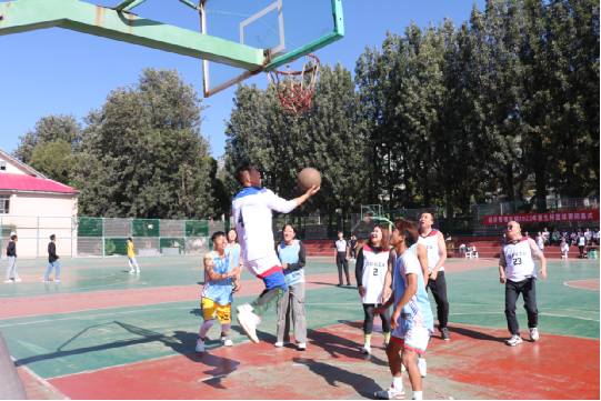 随着裁判一声哨响,比赛拉开了帷幕。球场上,每一位参赛的师生都精神饱满,斗志昂扬,他们娴熟的技术和默契的配合演绎出一个又一个精彩瞬间。教师代表队凭借经验防守及时,凭借过人的技巧和娴熟的配合,频频得分,充分显示了我院教师的风采;学生代表队依靠体能优势和灵活战术,突破重防,奋起投篮。一次次激烈的对抗、快速的突破、精准的抢断、稳健的投篮赢得了在场师生的阵阵掌声和欢呼声。