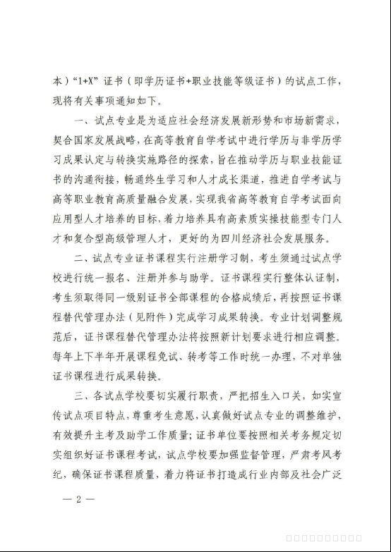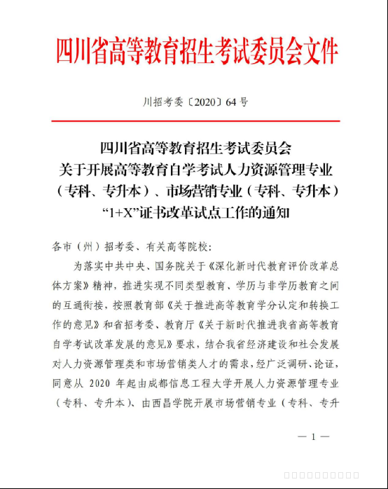 2020Äê11ÔÂ17ÈÕËÄ´¨Ê¡¸ßµÈ½ÌÓýÕÐÉú¿¼ÊÔίԱ»áÏ·¢¡¶ËÄ´¨Ê¡¸ßµÈ½ÌÓýÕÐÉú¿¼ÊÔίԱ»á¹ØÓÚ¿ªÕ¹¸ßµÈ½ÌÓý×Ôѧ¿¼ÊÔÊг¡ÓªÏúרҵ£¨×¨¿Æ¡¢×¨Éý±¾£©¡°1+X¡±Ö¤Êé¸Ä¸ïÊԵ㹤×÷µÄ֪ͨ¡·£¨´¨Õп¼Î¯¡¾2020¡¿64ºÅ£©¡£Åú×¼Î÷²ýѧԺ¿ªÕ¹¸ßµÈ½ÌÓý×Ôѧ¿¼ÊÔÊг¡ÓªÏúרҵÊԵ㹤×÷¡£¿¼Éú¿Éͨ¹ý²Î¼ÓÖйúÊг¡¸Úλˮƽ֤Ê鿼ÊÔ£¬Äõ½¡¶ÖйúÊг¡¸Úλˮƽ֤Êé¡·ºó¿ÉÉêÇëµÖÃâ×Ôѧ¿¼ÊÔÊг¡ÓªÏúרҵµÄ3ÃÅͳ¿¼ºÍ2ÃÅУ¿¼¡£