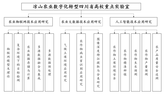 Á¹É½Å©ÒµÊý×Ö»¯×ªÐÍËÄ´¨Ê¡¸ßµÈÑ§Ð£ÖØµãʵÑéÊÒÁ¢×ãÓÚÁ¹É½ÂÌÉ«áÈÆð£¬È«Á¦ ·þÎñ¡°ÖйúÁ¹É½?°²ÄþºÓÏÖ´úũҵ¹è¹È¡±½¨É衣ʵÑéÊÒÒÔ¼ÆËã»ú¿ÆÑ§Óë¼¼Êõ¡¢µç×ÓÐÅÏ¢¹¤³Ì¡¢Å©Ñ§µÈרҵΪ»ù´¡£¬ÖúÁ¦Á¹É½ÊµÏÖũҵÊý×Ö»¯×ªÐÍ¡£ÊµÑéÊÒÑо¿·½ÏòÖ÷Òª°üÀ¨£ºÅ©ÒµÎïÁªÍø¼¼ÊõÓ¦ÓÃÑо¿¡¢Å©Òµ´óÊý¾Ý¼¼ÊõÓ¦ÓÃÑо¿¡¢È˹¤ÖÇÄܼ¼ÊõÓ¦ÓÃÑо¿¡£Ñо¿ÄÚÈÝÉæ¼°Å©ÒµÎïÁªÍø¡¢Å©Òµ´óÊý¾Ý¡¢È˹¤ÖÇÄܵÈÐÂÒ»´úÐÅÏ¢¼¼Êõ£¬Èçͼ1Ëùʾ¡£