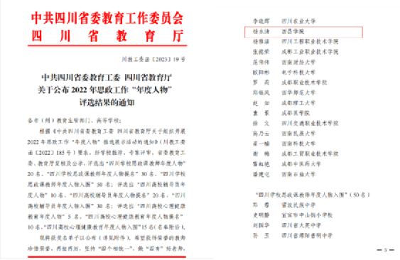 我校杨永清教授荣获2022年“四川学校思政课教师年度人物”