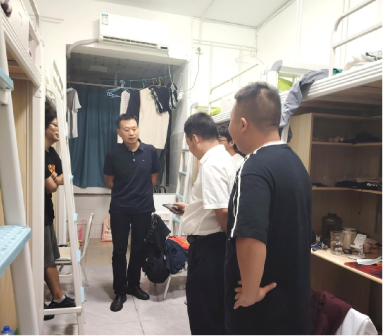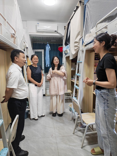 李佩华副院长与各位老师逐间宿舍与新生亲切交流,细致询问学习背景、家庭状况、住宿适应情况和饮食习惯等,认真倾听他们的心声。他提醒同学们要注意调整状态,注重学习和生活中的安全。