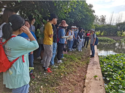 其次,在陈老师的带领下,全体同学对邛海1-6号人工湿地进行了现状调查,包含了人工湿地的设计构造、植物的识别、水体的监测和微生物的活动情况以及进入人工湿地的生活污水和农业面源污染情况等。