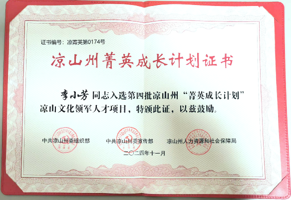 ¡¡¡¡×£ºØÎÒ¹ÝÀîС·¼¸±¹Ý³¤ÈëÑ¡µÚËÄÅúÁ¹É½ÖÝ¡°Ý¼Ó¢³É³¤¼Æ»®¡±Á¹É½ÎÄ»¯Áì¾üÈ˲ÅÏîÄ¿¡£