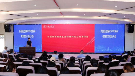 ¡¡¡¡Íâ¹úÓïѧԺԺ³¤³Âºì÷×÷ʵϰ¶¯Ô±½²»°£¬Ç¿µ÷ÁËʵϰµÄÖØÒªÒâÒ壬¹ÄÀøÍ¬Ñ§ÃÇÕäϧʵϰ»ú»á£¬»ý¼«¶ÍÁ¶×Ô¼º£¬ÎªÎ´À´µÄÖ°Òµ·¢Õ¹´òϼáʵ»ù´¡¡£