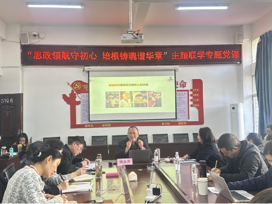 为深入学习贯彻党的二十大精神,进一步强化教师思想政治引领,扎实推进师德师风建设和课程思政改革,提高教师政治理论学习志向,构建学校“大思政”立德树人新格局。按照学校统一安排,2025年3月25日下午,马克思主义学院院长杨永清为外国语学院全体教师开展“思政领航守初心 培根铸魂谱华章”主题联学专题党课。专题党课由外国语学院党委书记文宇主持。