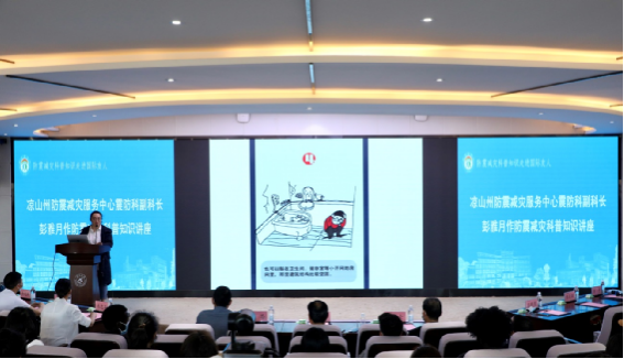 Peng Yayue, deputy chief of the Earthquake Prevention Office of the Earthquake Disaster Mitigation Service Center of Liangshan Yi Autonomous Prefecture, explained in detail about earthquake disasters from the causes and consequences of earthquakes, and instructed on earthquake avoidance and self-rescue measures.