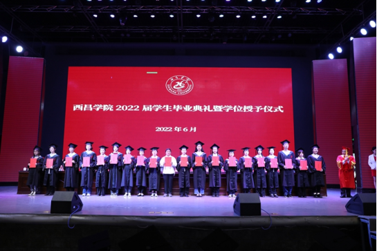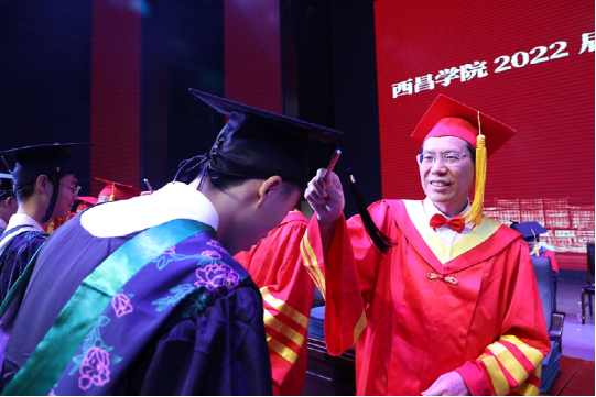 Xichang University held its commencement ceremony and degree conferment ceremony for the undergraduate class of 2022 on June 23. The ceremony was attended by secretary of the CPC XCU Committee Peng Zhengsong, Xichang University President Zhu Zhanyuan, vice secretary of the CPC XCU Committee Du Zhengcong, vicesecretary of the CPC XCU Committee and secretary of Committee for Discipline Inspection Yao Yuncheng, member of the standing committee of the CPC XCU committee and vice-president of the university, Chen Xiaohu, Hu Jinzhao, Qumu Wuge, Zhang Wei, member of the standing committee of the CPC XCU committee and head of the Propaganda Department and the United Front Work Department of Shen Liangjie, all the members of the Academic Degree Evaluation Committee, and representatives of students and teachers. The ceremony was hosted by Zhang Wei.