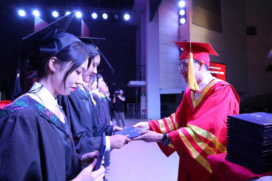 Professor Yang Hong from School of Environment and Resources, delivered her remarks as the teacher representative, extending her heartfelt congratulations to all the graduates on the successful completion of their studies. In her remarks, she gave three pieces of advice to all graduates: firstly, learn to adapt to the society; secondly, never give up the pursuit of learning; thirdly, never give up dreams.