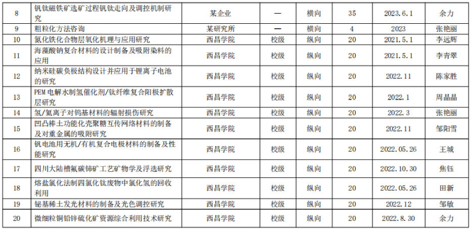 截至2023年5月31日,西昌学院理学院在研科研项目20项目,项目资金总额581.97万元。其中,校外项目资金361.97万元,校内项目资金200万元。纵向项目资金542.97万元,横向项目资金39万元。国家和省部级项目3项,州和市级合计4项。