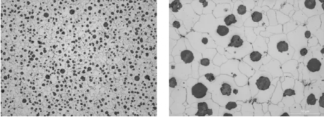¡¡¡¡C. ÍË»ð̬ÇòÄ«ÖýÌú×éÖ¯£ºÌúËØÌå+Çò״ʯ×óX100£¬ÓÒX400£©