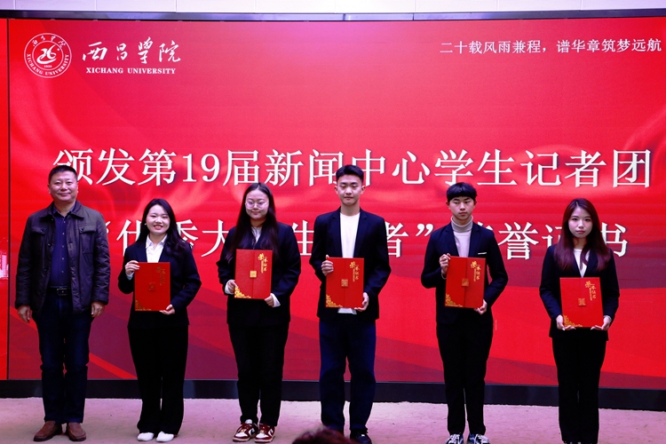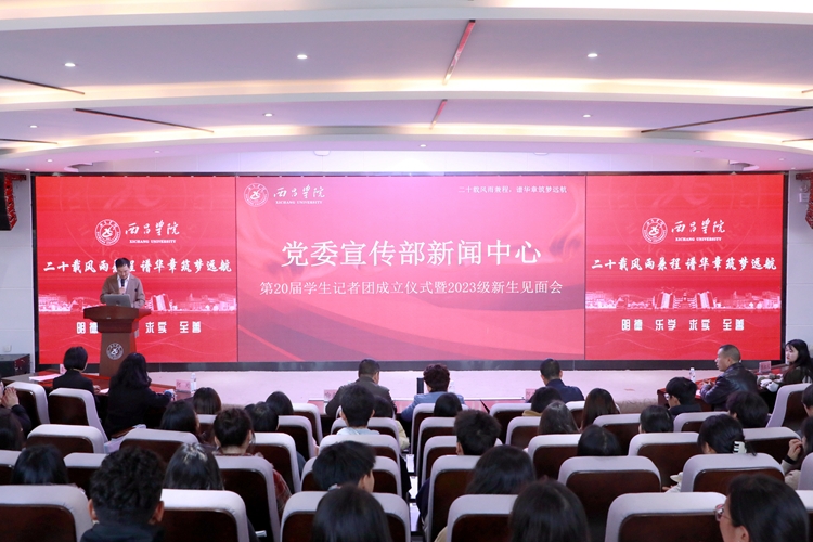 二十载风雨兼程,谱华章筑梦远航。12月9日上午,党委宣传部新闻中心于西昌学院安宁校区致知楼环形报告厅举行第20届学生记者团成立仪式暨2023级新生见面会。时光如白驹过隙,一年时光匆匆而逝,大家再次欢聚一堂,谈论成长,商议未来。党委常委、宣传部部长、统战部部长沈良杰,学生工作部部长喻朝阳,校团委副书记阿力非日,党委宣传部老师,各二级学院学生会主席,各校级组织负责人,记者团全体成员参加会议。会议由党委宣传部秦国俊主持。