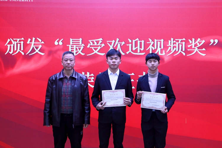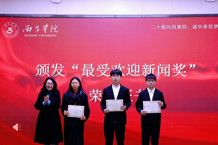 何玲颁发“最受欢迎新闻奖”荣誉证书,作第19届记者团工作总结,并宣读第20届新闻中心学生记者团拟聘干部名单。