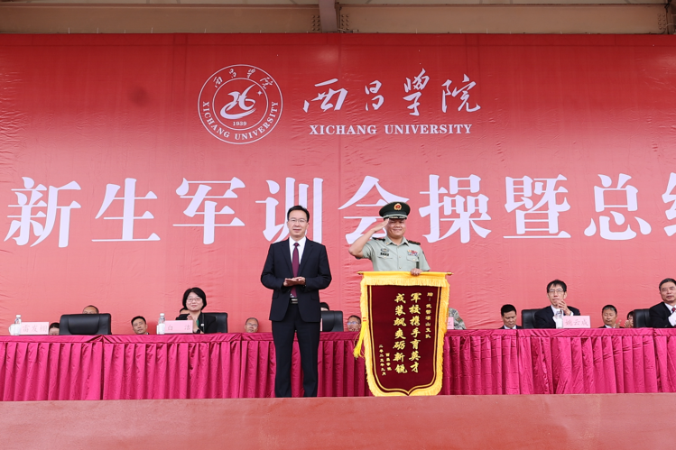 白洁作军训总结。她指出,14天的军训里,2025级新生以挺拔军姿、整齐步伐、嘹亮口号,展现了新时代青年奋发图强的精神风貌,不仅增强了体魄、磨炼了意志,更培养了令行禁止的纪律观念、团结协作的集体意识和深厚的家国情怀,圆满完成了大学“第一堂大课”。她对同学们提出三点希望:一是永葆爱国赤子之心,做有理想、有担当的西院人;二是延续军训优良作风,做有纪律、有毅力的西院人;三是珍惜大学美好时光,做有本领、有修为的西院人。