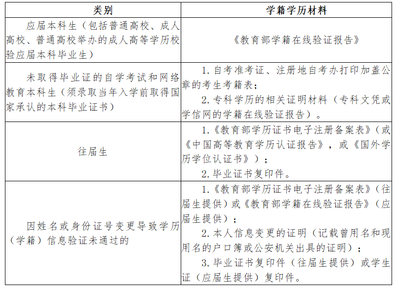 ¡¡¡¡ ±í1ѧÀúѧ¼®Ð£Ñéδͨ¹ý¿¼Éú»¹ÐëÌṩ²ÄÁÏÇåµ¥