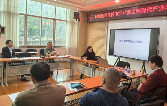 为进一步推广民族地区高校在“ICT+”新工科现代产业学院的建设成果,加强产学研合作,提升新工科教育质量,2024年10月31日下午,西昌学院信息技术学院特邀请山东建筑大学信息技术学院王涛教授和高焕兵教授来我校进行经验交流,双方围绕“ICT+”新工科的建设经验、特色、成效展开深入研讨,探索合作路径。