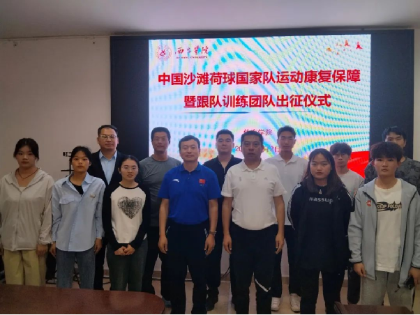 2024年4月2日星期三13:00在体育馆会议室召开中国沙滩荷球国家队运动康复保障暨跟队训练团队出征仪式,体育学院副院长(主持工作)郎朝春、体育学院党委副书记韩勇、体育学院实验室主任李龙、体育学院荷球跟训团队指导老师王剑以及运康和体教班8位同学参加,此次会议由体育学院运动康复专业负责人黄朕主持。  郎朝春总结到,这次机会来之不易,对于我们夯实专业根基和专业建设,以及提高同学们的专业能力有很大帮助,希望通过这次机会,让老师和同学们能够走出去,扩展见识。其次,希望同学们保持自信和积极进取心态,多学、多做、多观察,多总结。最后,预祝大家凯旋和满载而归。  韩勇、李龙和王剑老师从荷球运动特点、荷球常见运动损伤以及我们如何学、如何做、如何做好康复保障工作等给同学们进行介绍,并且强调了安全的重要性;希望同学们珍惜这次机会,发挥吃苦耐劳精神,保证良好沟通,将专业知识应用到实践中,学好本领。最后,祝大家学有所获。  运动康复保障团队学生代表吴镁洁讲到,虽然我们所掌握的知识还不全面,实践经验不够丰富,但会珍惜这次来之不易的机会,全力以赴、竭尽所能地为运动员们提供最优质的康复保障服务,保证他们赛场上能发挥最佳水平。  跟训运动员代表果基依姑子讲到,我们会听从学院、老师和教练的安排,全身心投入到沙滩荷球的的学习当中,发扬西昌学院体育学院乐于学习、不怕困难和勇于担当的精神,以饱满的姿态迎接新的挑战。  |