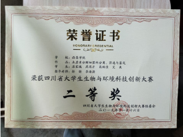 ¡¡¡¡´óѧÆÚ¼ä£¬»ñµÃ¹ý¹ú¼ÒÀøÖ¾½±Ñ§½ð¡¢ÓÅÐãѧÉú½±Ñ§½ðÌØµÈ½±¡¢Ò»µÈ½±¡¢¶þµÈ½±¡¢ÓÅÐãѧÉú¸É²¿ºÍÈýºÃѧÉúµÈ½±Ï»ñµÚÈý½ìÈ«¹ú´óѧÉúÉúÃü¿ÆÑ§¾ºÈüÓÅʤ½±¡¢ËÄ´¨Ê¡´óѧÉúÉúÎïÓë»·¾³¿Æ¼¼´´Ð´óÈü¶þµÈ½±£¬2019ÄêËÄ´¨Ê¡´óѧÉú¡°ÉúÃüÖ®ÐÇ¡±¿Æ¼¼ÑûÇëÈü¶þµÈ½±ºÍ2018ÄêËÄ´¨Ê¡´óѧÉú¡°ÉúÃüÖ®ÐÇ¡±¿Æ¼¼ÑûÇëÈüÈýµÈ½±µÈ¶àÏîרҵ¾ºÈü½±Àø¡£